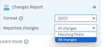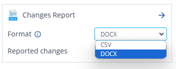 A drop-down list will provide options to export changes as a DOCX or exporting to a .csv using either the All changes or the Matching filters.