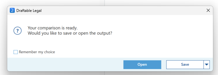 You will be prompted to either save or open the Redlined Excel comparison. For this example, lets open the Redline Excel comparison.