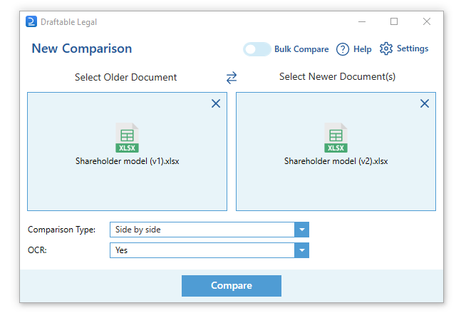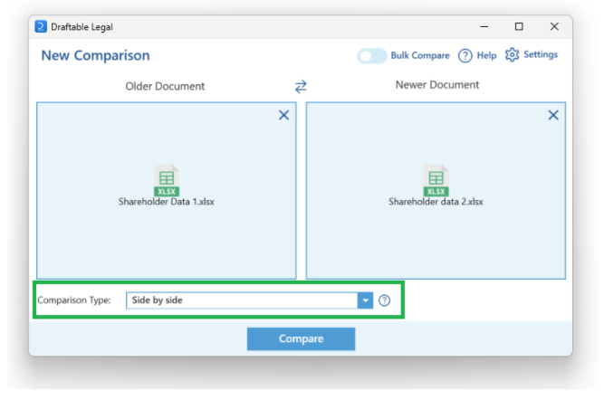Select the two documents you want to compare, either by browsing your files or dragging and dropping them into the compare window.