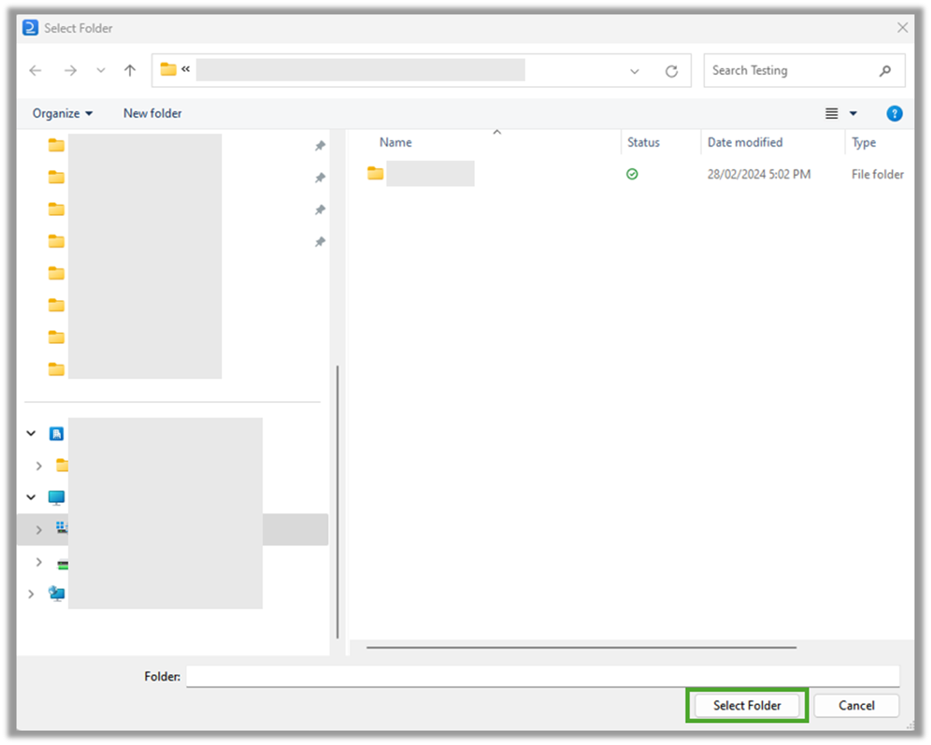 Once opened, the Select Folder pop-up will allow you to navigate to the folder that the comparison outputs are to be saved in, then click Select Folder.