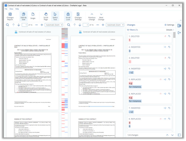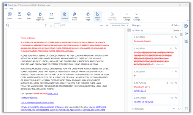 - An interactive (clickable) Change List where selecting changes will jump to their location in the document