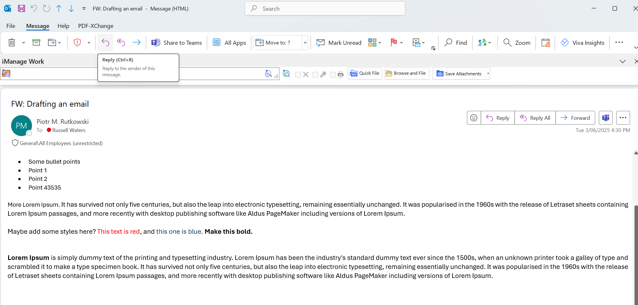 Reply workflow - If you intend to Redline an Email or Accept and Reject changes